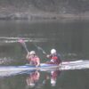FASTEST FINISHERS AGAIN — The pair of Timothy Johnston, right, and Orion Fleming had the day’s fastest time during the Kiwanis Club of Dover-Foxcroft’s 52nd annual Piscataquis River Race from King Cummings Park in Guilford to the finish line in Dover-Foxcroft across West Main Street from Foxcroft Academy on Saturday, April 25. Johnston and Fleming finished the approximate 9.5-mile paddle in a time of 52 minutes, 56 seconds. As the fastest kayakers their names will be added again to the Bob Darling Memorial Trophy, named for the past Kiwanis president and race chair. Johnston and Fleming earned the honor for the third year in a row.