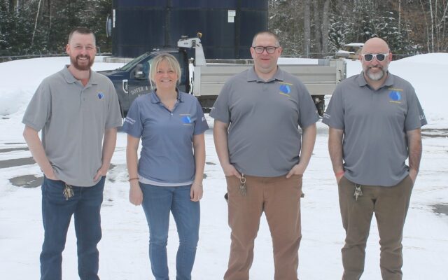 DISTRICT STAFF —- Dover & Foxcroft Water District staff, from left, Superintendent Louis R. Durgin Jr., Office Manager Alison Belote, Maintenance Technician Sammy Towner and Distribution Operator Justin Gilbert.
