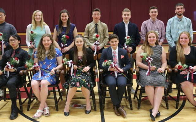 DOVER-FOXCROFT — On May 1 a special assembly was held at Foxcroft Academy to announce the Class of 2018’s outstanding scholars at the annual Rose Award ceremony. This year the recipients are Jinlin “Wayne” Chen, Jenna Clukey (the Class of 2018 valedictorian), Emily Curtis, Maya Hagelin, Charlotte Jolin, Gabrielle Jolin, Shu “Will” Lin, Griffin Loomis, Virginia Macomber, Avery Nelson (the salutatorian), Jacob Olson, Esau Olson, and Joshua Reed.