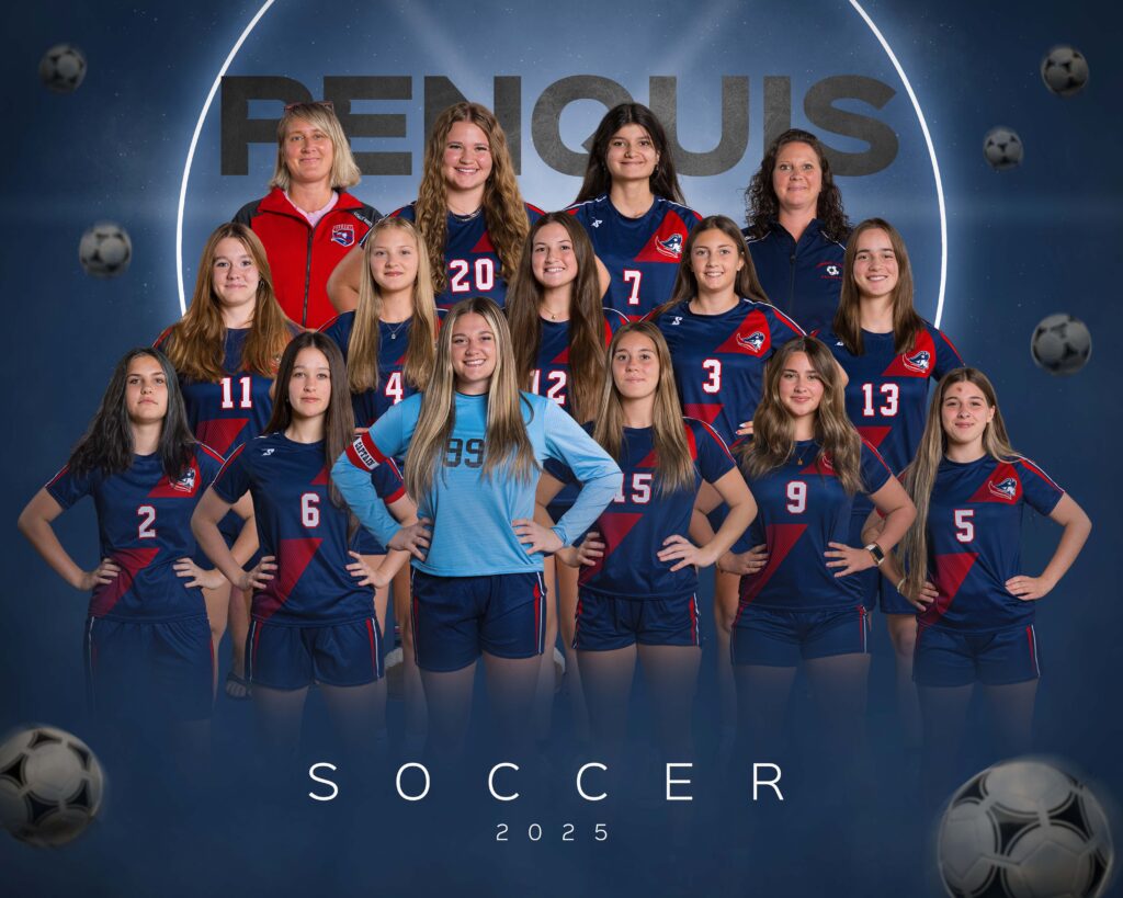 PENQUIS VALLEY GIRLS SOCCER — Front, from left, Makayla Rozelle, Amara Driscoll, Brooklyn Decker, Ashley Ladd, Caroline Snider and Caysie Moore. Middle, Adalai Perkins, Addison Jenkins, Gracie Heal, Hannah Bavelaar and Ewa Ziolkowska. Back, head coach Erin Weston, Ava Harmon, Ava Shoopman and coach Lillian Perkins.