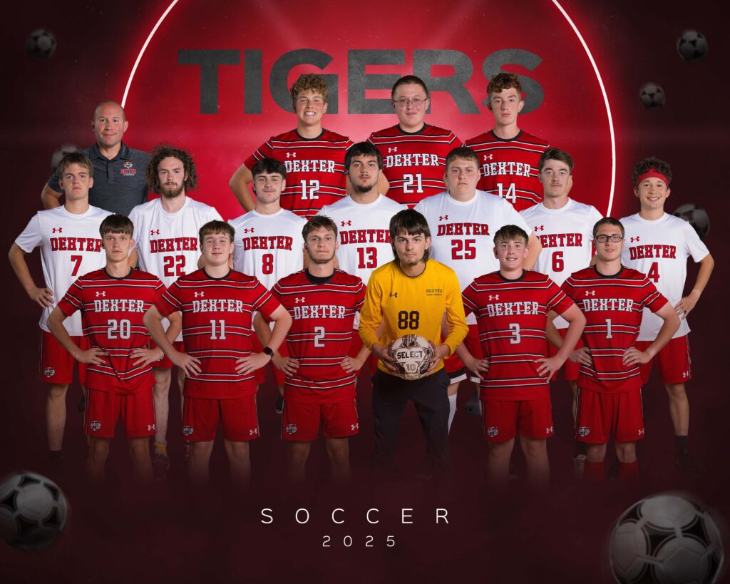 DEXTER BOYS SOCCER — Front, from left, Jerimiah Cobb, Jake Fleming, Tristan Hopkins-Watrous, Simon Grenier, Brenden Stevens and Landon Warner. Middle, Nathan Brasier, Nathan Galligan, Gabe Cupero, Quentin Rich, Alex Sutton, Caleb Bowman and Zeke Bermúdez. Back, head coach Andrew Bermudez, Liam Saunders, Ryker Olson and Rohan Coulombe.