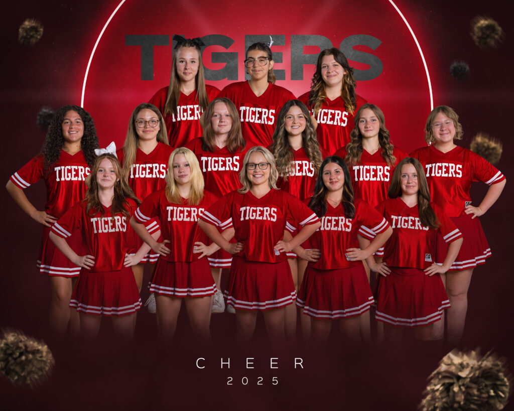 DEXTER CHEER — Front, from left, Olivia Murray, Riley Curtis, Makenzie Curtis, Alexandra Flagg and Rayna Maloon. Middle, Alyssa Rivas, Isabella Sitterly, Lizzie Roats, Madison LaGross, Abigail Trafton and Bree Robbins. Back, Sadie Davis, Belinda Hernandez and Paige Jandreau. Not pictured, Baylee Turcotte and Liset Ramirez Barahona.