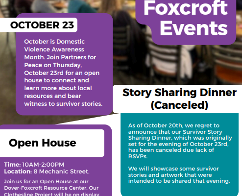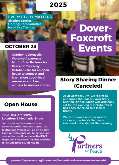 DOVER-FOXCROFT — October is Domestic Violence Awareness Month and Partners for Peace is hosting an open house at the Dover-Foxcroft Resource Center on Thursday, Oct. 23.
