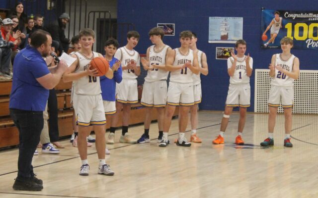In the opening minute of the second quarter, Gaw sank a shot jumper in the lane to get to exactly 1,000 points. He finished the night with 18 points, 1,006 and counting for his high school career, as the Pirates won 76-29. Ten rebounds gave Gaw a double-double.