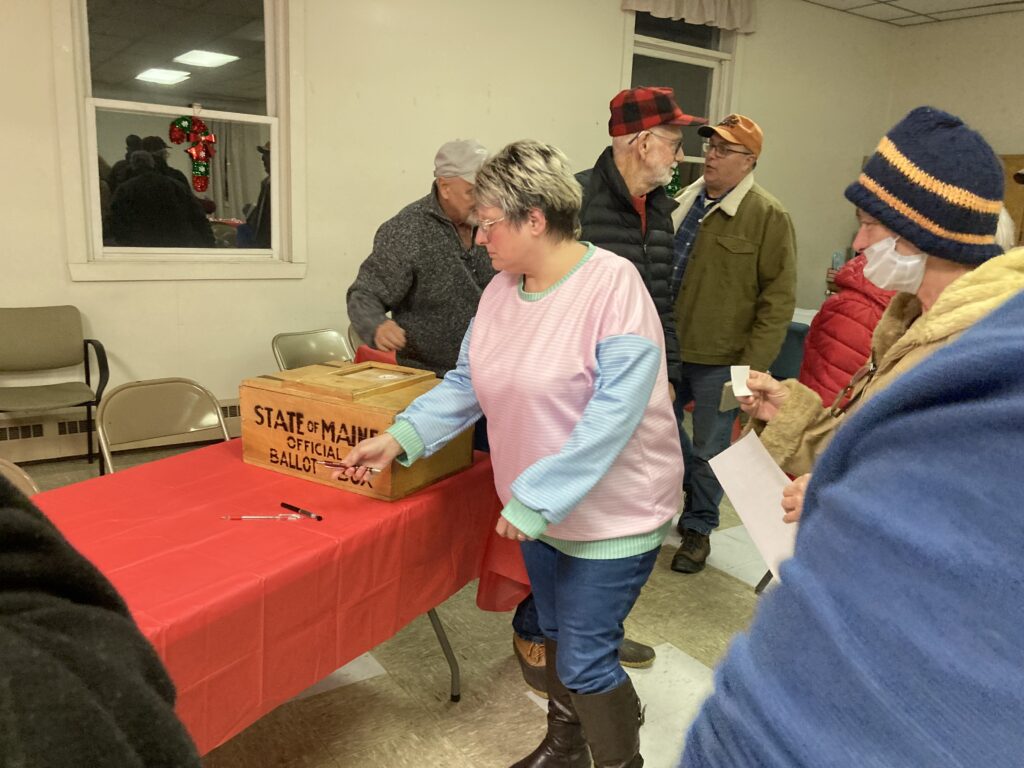 DEORGANIZE — Maxfield residents cast ballots to deorganize on Monday.