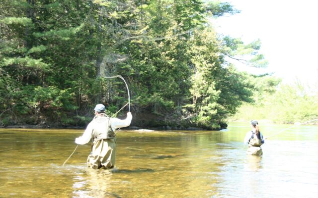FLY CASTING — Scott, the author’s son, casts a fly on Grand Lake Stream — one of Maine’s fly-fishing-only waters — while his sister Lora fishes upstream.