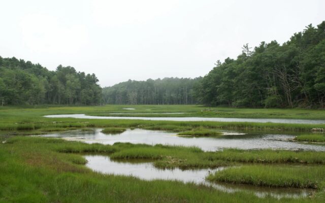 AUSTIN CARY LOT — Forest surrounds a salt marsh in the Austin Cary Lot on Great Island on July 14. A new law authorizes Baxter State Park to sell the 228-acre lot, subject to restrictions.