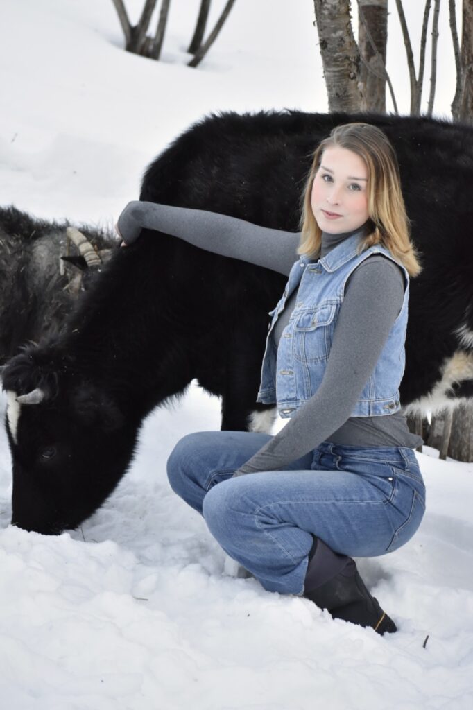 ON THE FARM — Isabelle St. Cyr, Miss Maine USA’s first transgender contestant, pictured here with animals on her farm in Monson.