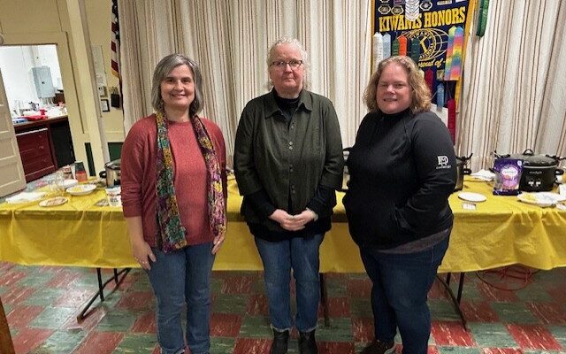 PEOPLE’S CHOICE – The People’s Choice Award in the Friends of the Dexter Meeting House chilli cookoff was won by Julie Farnsworth. From left, FDMD President Stacey Barker, guest judge Marilyn Curtis and Farnsworth.