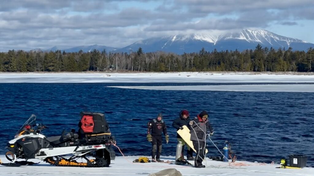 The team used inflatable airbags to lift the sled — the same method used to recover a plane that crashed into Moosehead Lake.