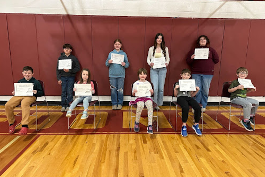Honorees are kindergartener Orion-Rose Wing, first grader Sibelius Hefferan, second grader Casen Butts, third grader Sagan Hefferen, fourth grader Sawyer Donahue, fifth grader Drake Parker, sixth grader Jocelyn Merrill, seventh grader Laureli Peterson, eighth grader Sariah Martin, library student Annie Moulton and physical education student Anthony Federico.