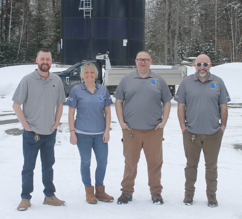 DISTRICT STAFF —- Dover & Foxcroft Water District staff, from left, Superintendent Louis R. Durgin Jr., Office Manager Alison Belote, Maintenance Technician Sammy Towner and Distribution Operator Justin Gilbert.