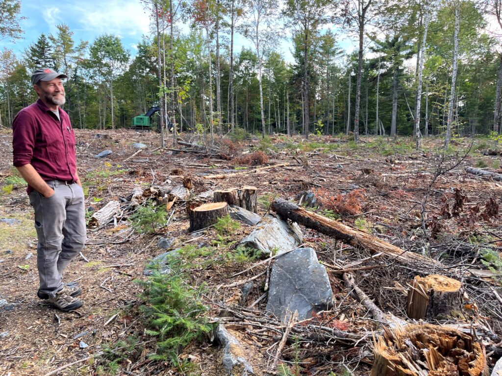 GETTING READY — Northern Forest Center Senior Program Director Mike Wilson stands at a logged Spruce Street lot in Greenville. The planning board is set to vote on final approval of the 28-unit subdivision at the April 15 meeting.