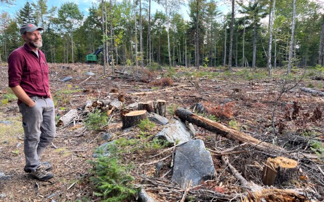 GETTING READY — Northern Forest Center Senior Program Director Mike Wilson stands at a logged Spruce Street lot in Greenville. The planning board is set to vote on final approval of the 28-unit subdivision at the April 15 meeting.