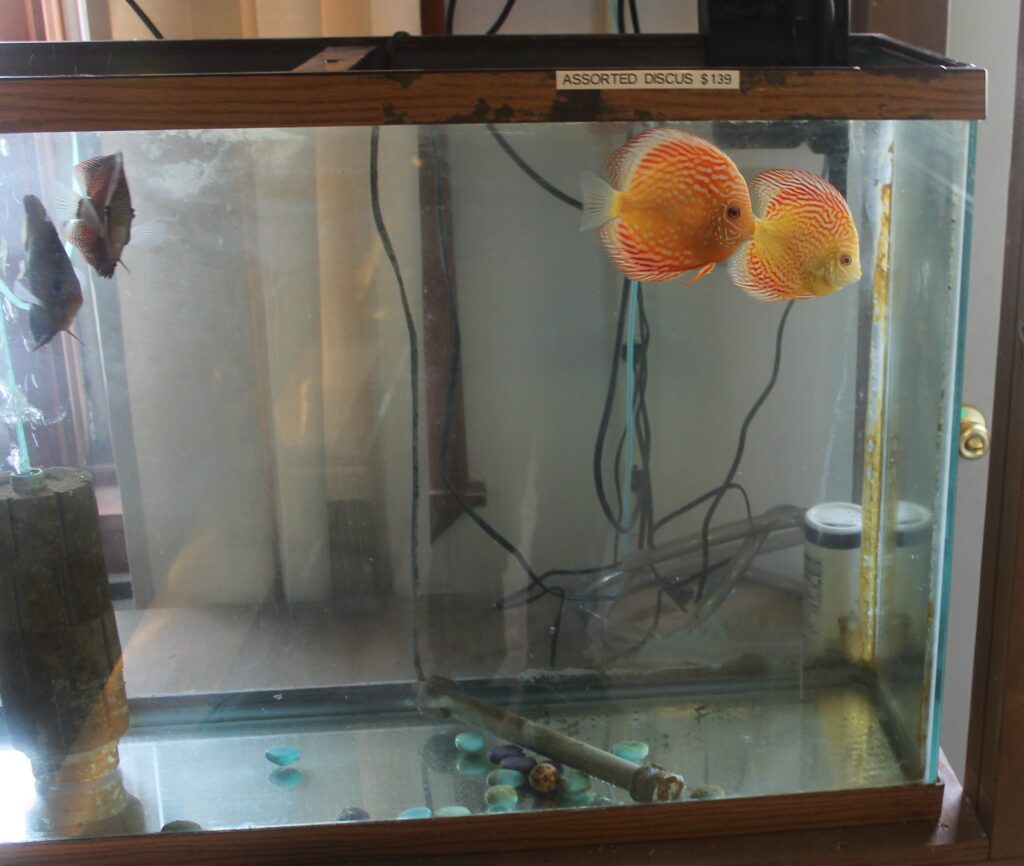 DISCUS FISH — A pair of discus fish swim in a tank at The Tropical Porch in Guilford.