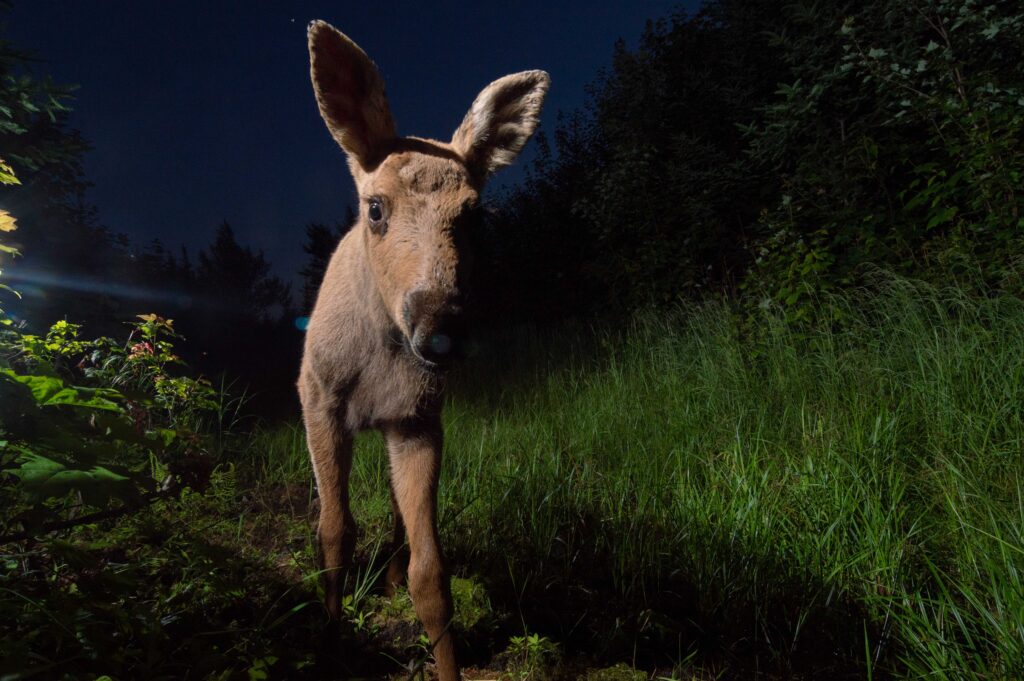 Springtime in the Maine woods is a busy season full of new life, and one of the first animals I try to capture with my cameras is moose calves. Early June is when a lot of cows drop their calves — usually singles or, if you’re lucky, twins. The calves stay tight to their mothers and hidden in thick cover while they get stronger on milk and fresh browse.