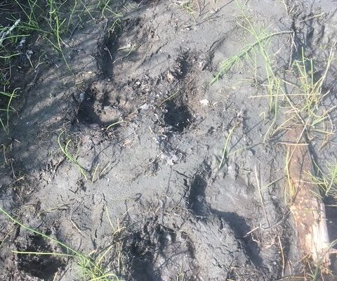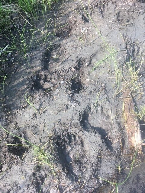 TRACKS — Bear tracks line the shore of the Russian River near where the Bar Harbor man was mauled by a sow grizzly.